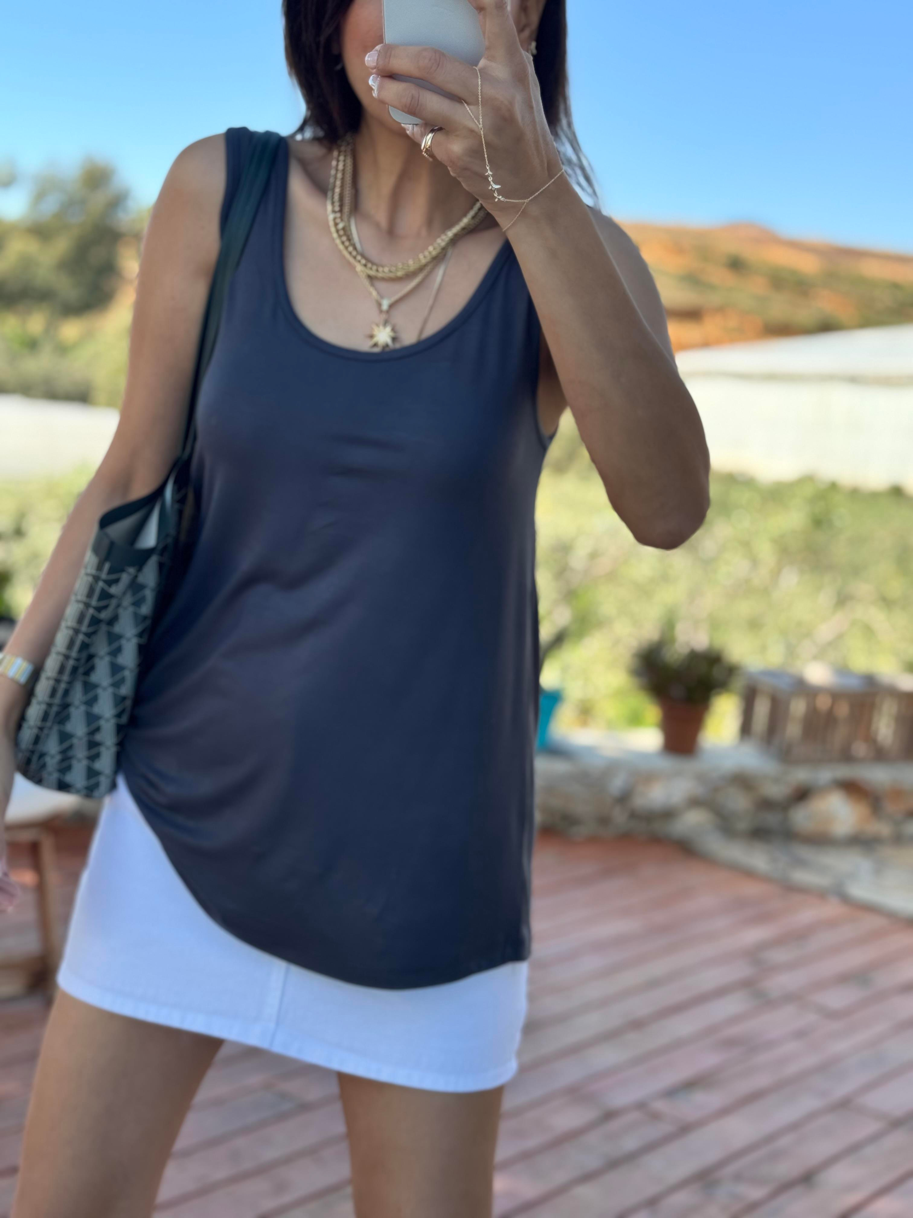 Basen Gizleyen Viskon Kolsuz Bluz Gri (1332-10)