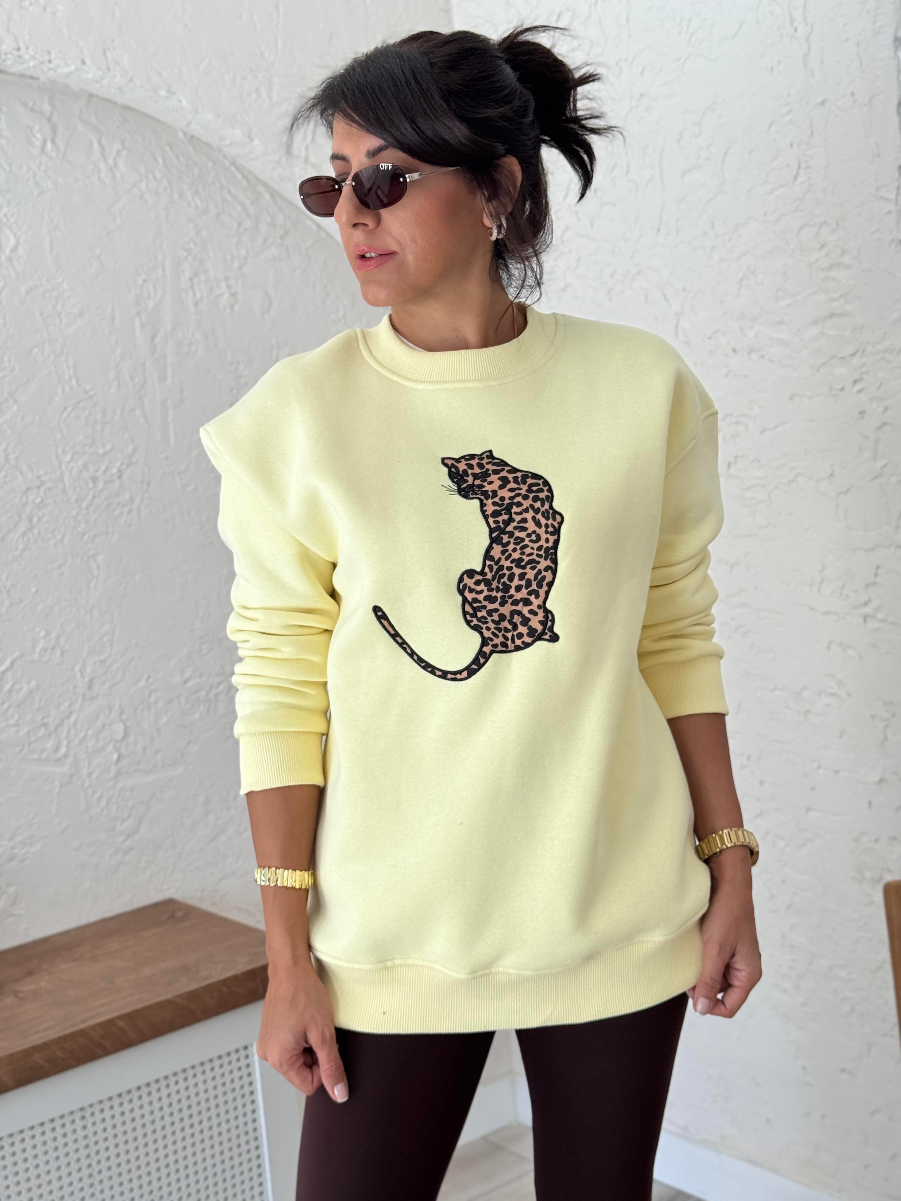 Bisiklet Yaka Leoapar Figürlü Sweat Sarı (8377-2)