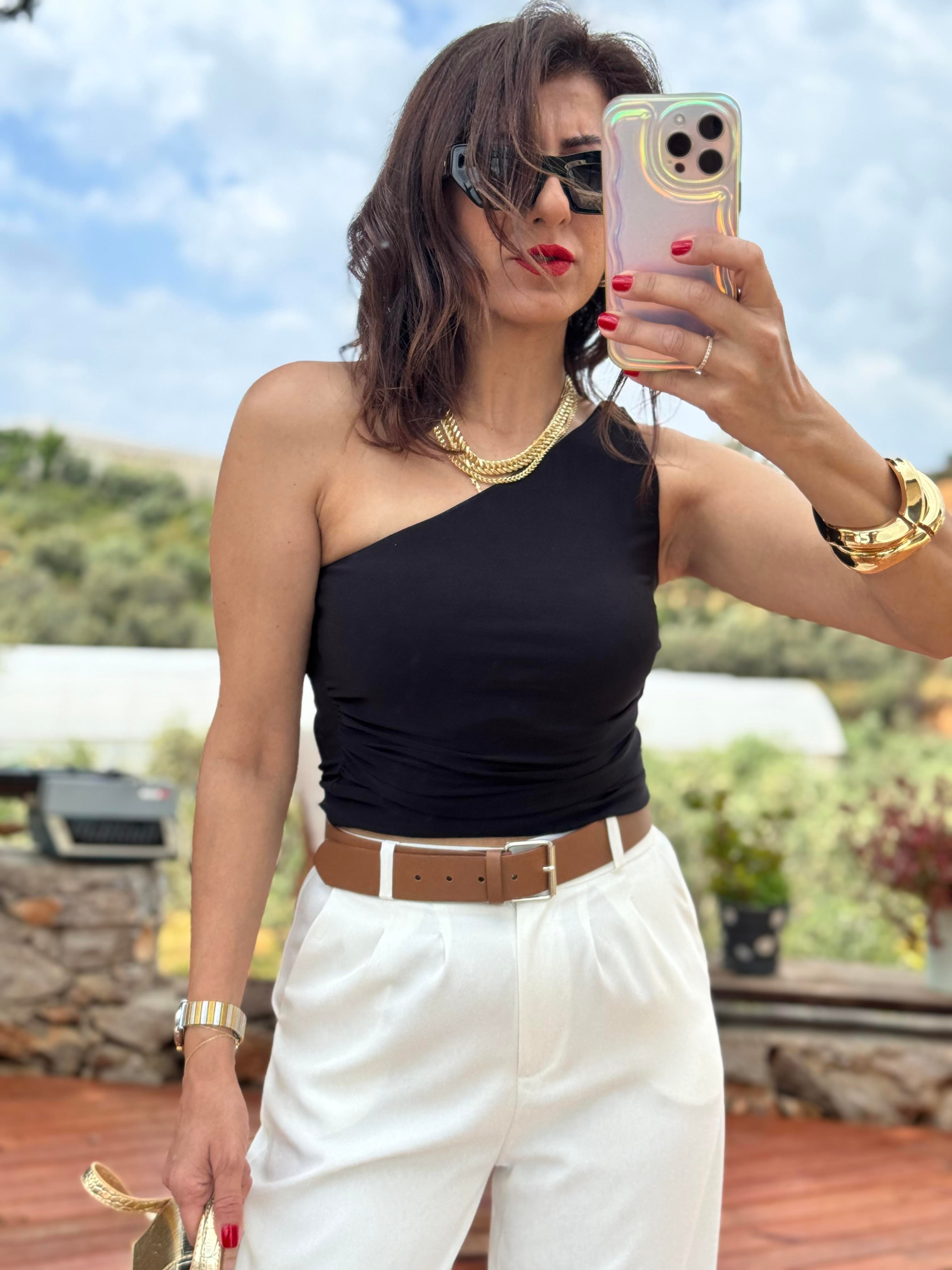 Çapraz bağ askılı bluz Siyah (0869-2)