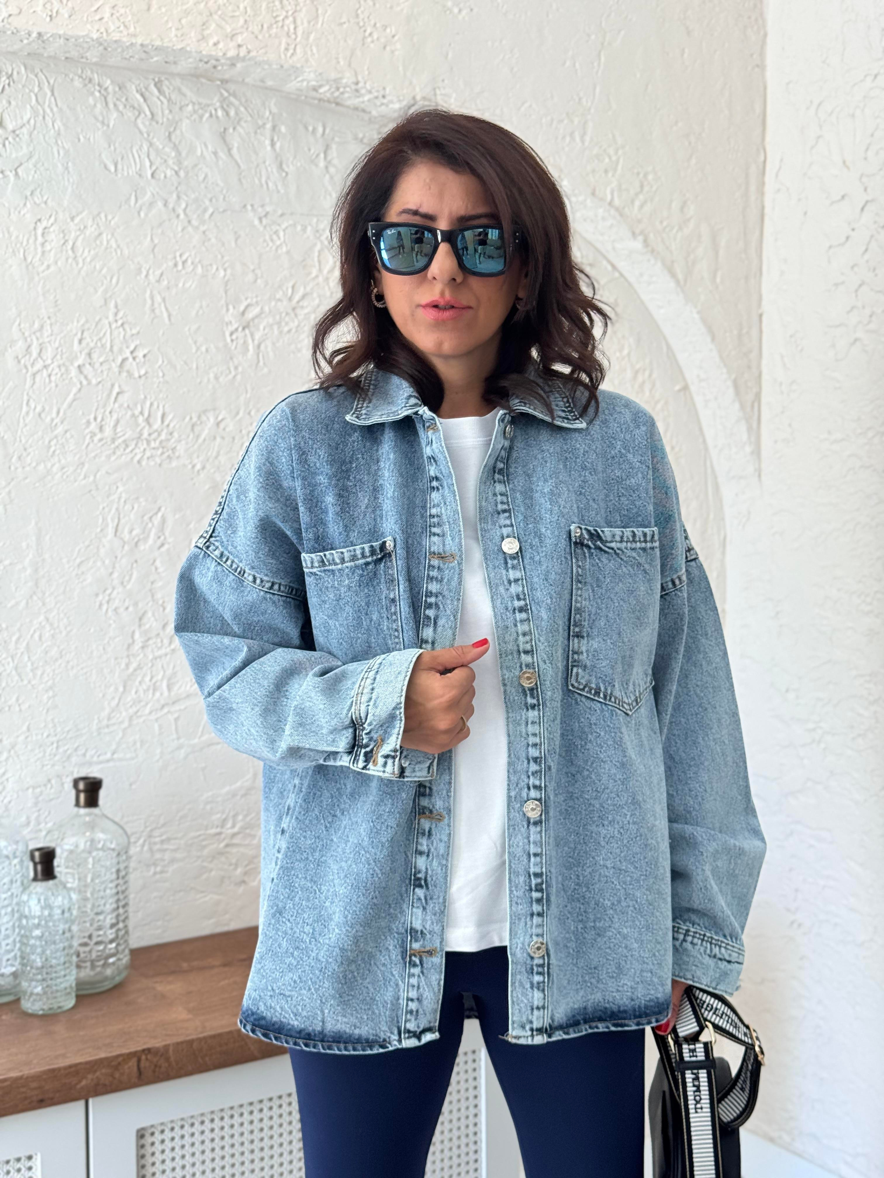 Oversize Ön Düğmeli Kot Ceket