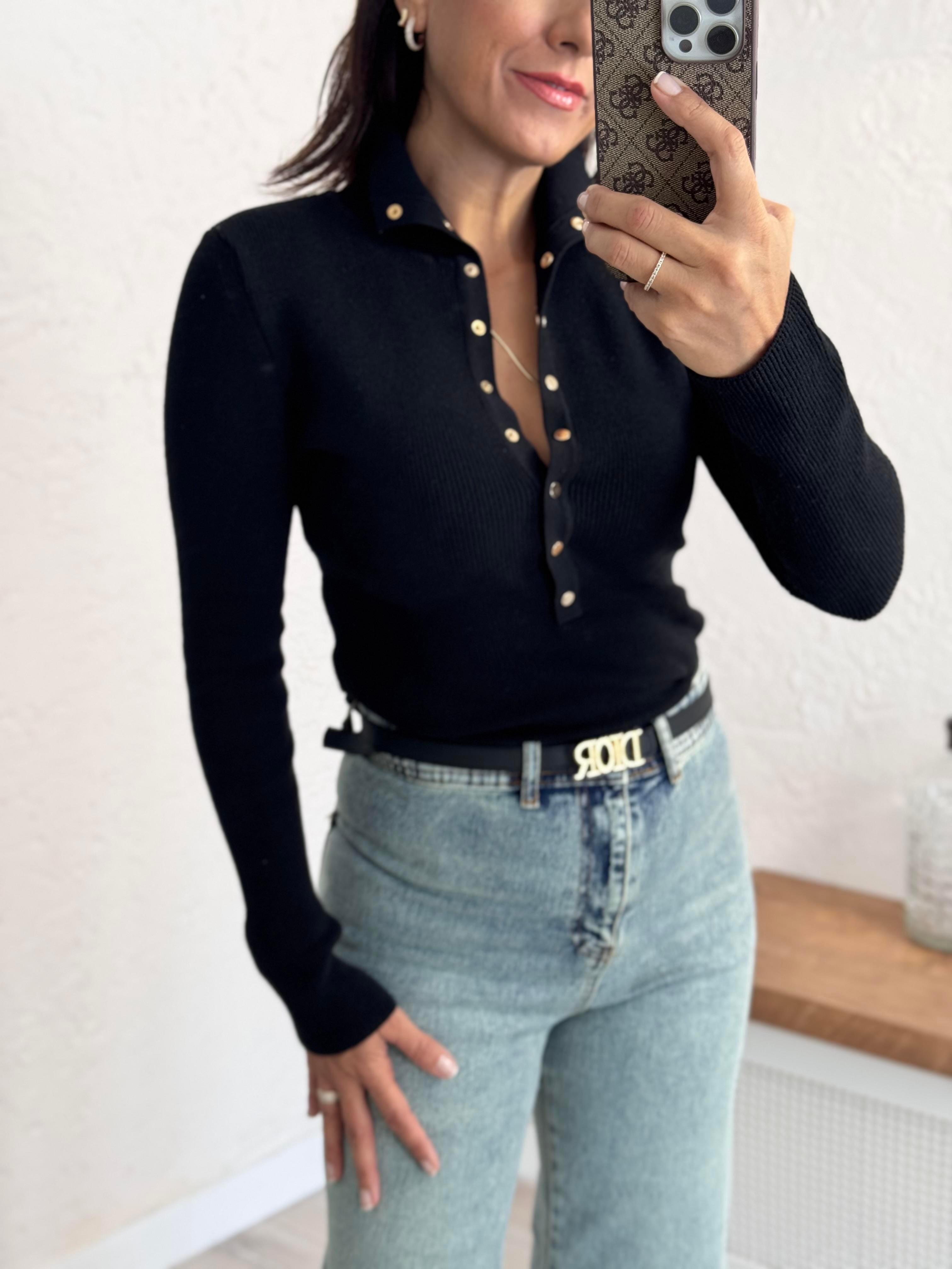 Dik Yaka Çıtçıtlı Triko Kazak Siyah
