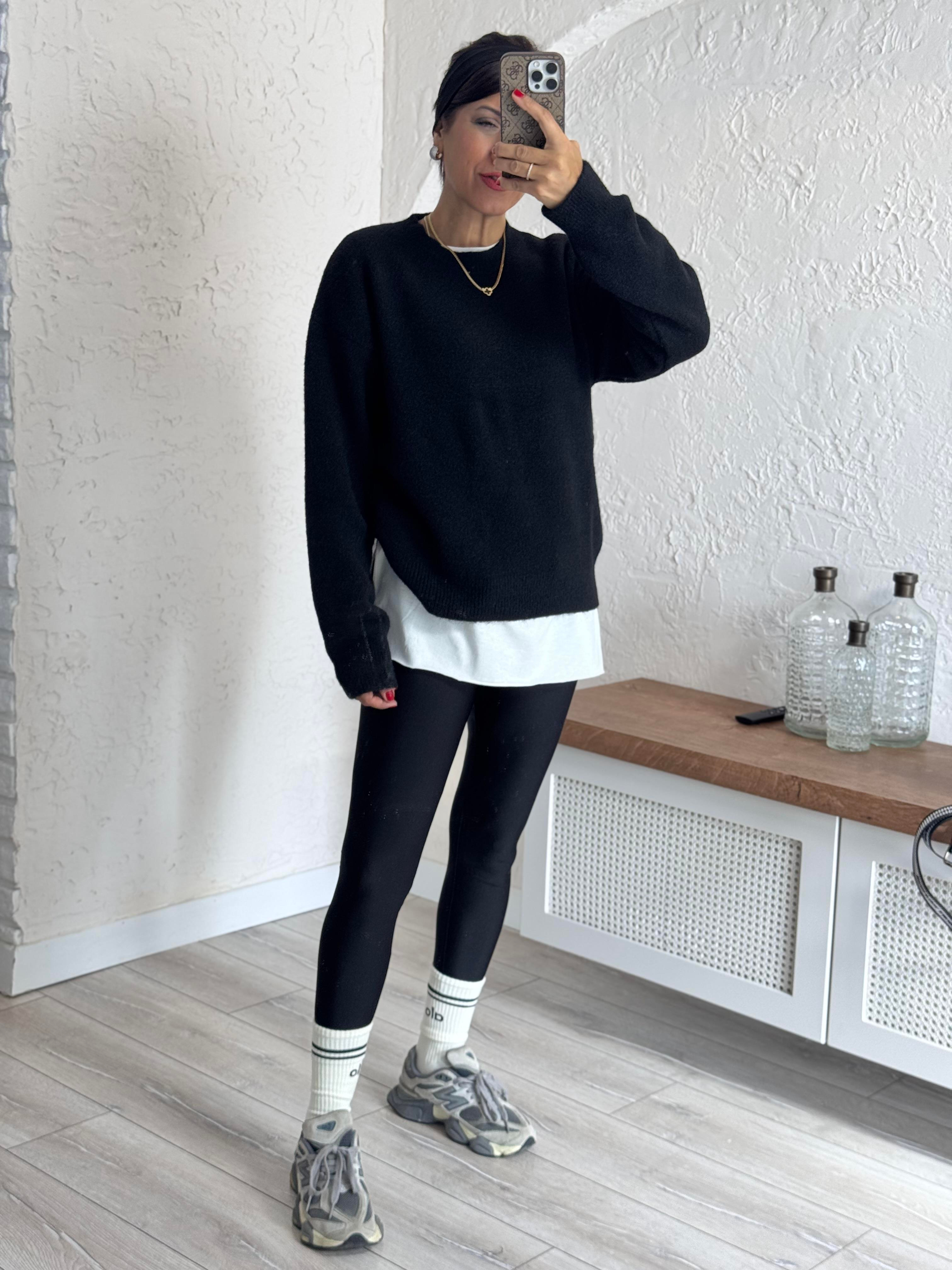 Dilvin Bisiklet Yaka Yumuşak Doku Kazak Siyah