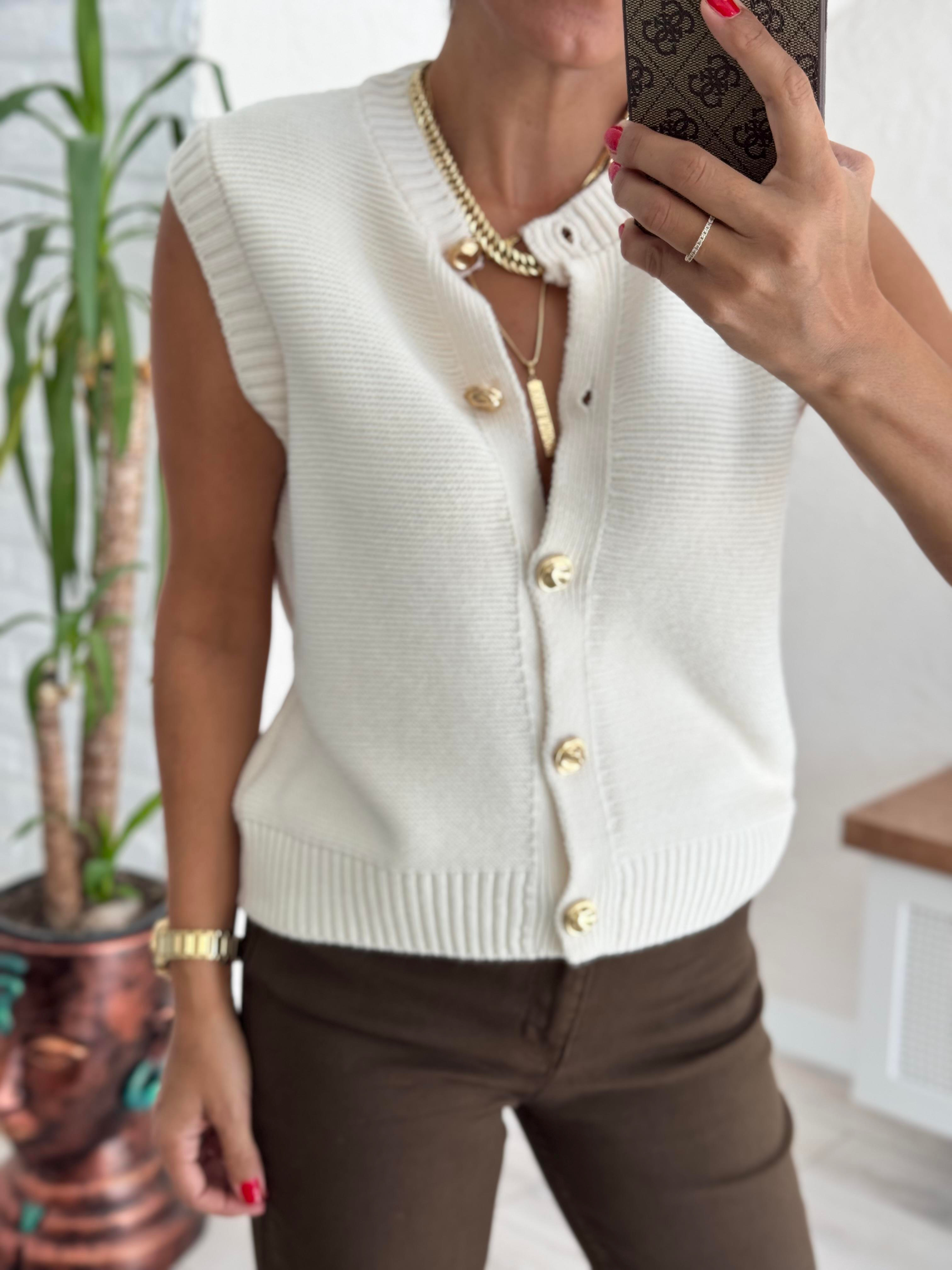 Premium Kalite,Gold Düğmeli Triko Yelek
