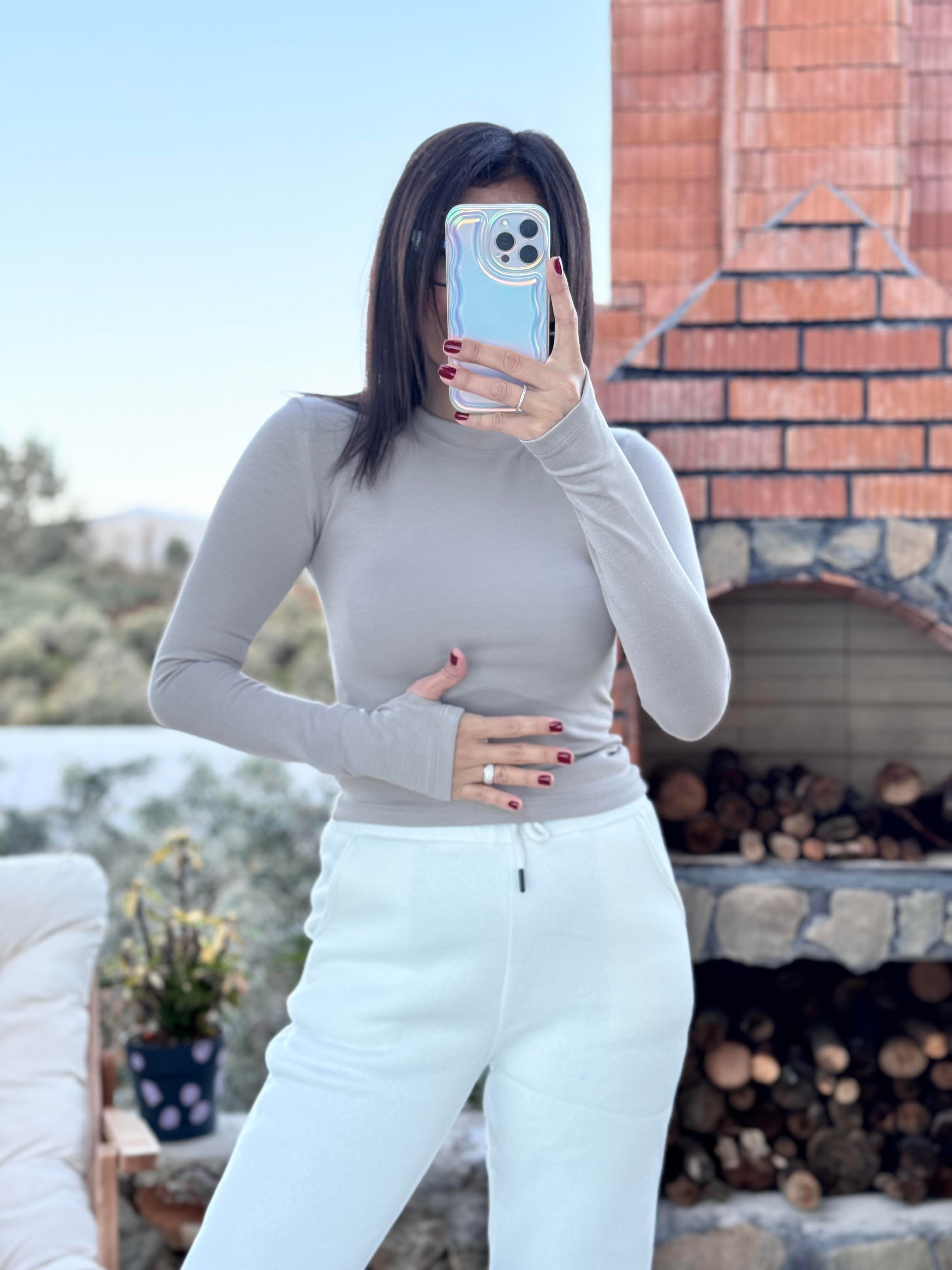 Kadın Bisiklet Yaka Modal Kumaş Uzun Kollu Parmak Geçmeli Badi Bej (1201-5)