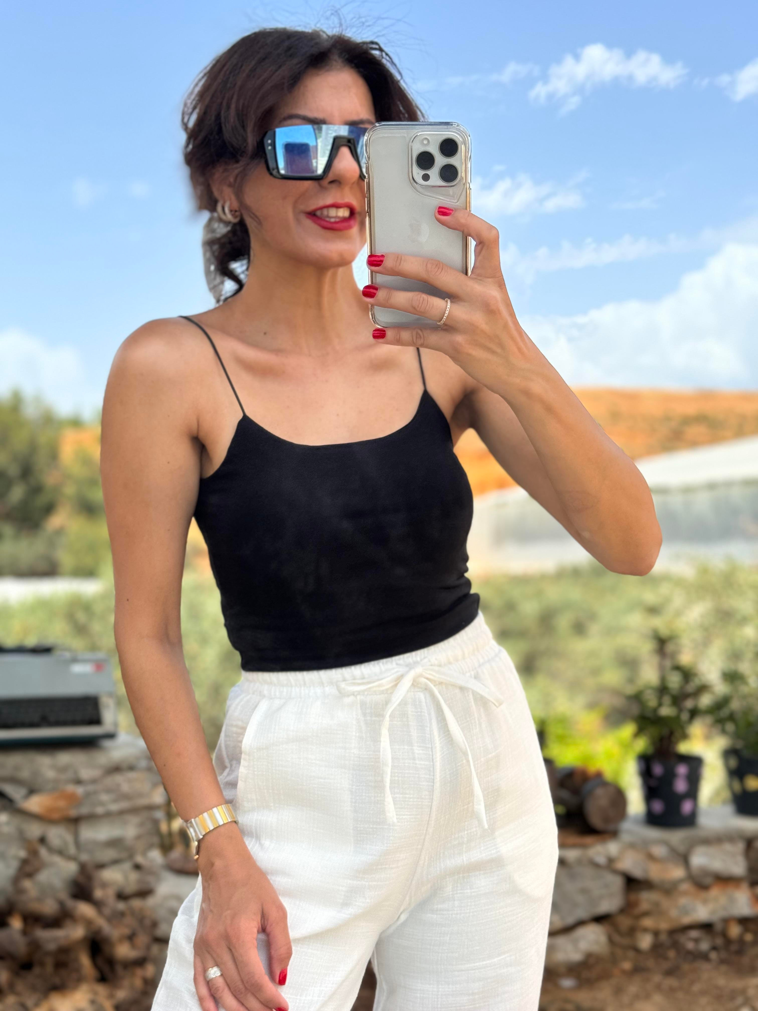 Askısı Lastikli Pamuklu Penye Crop Top,