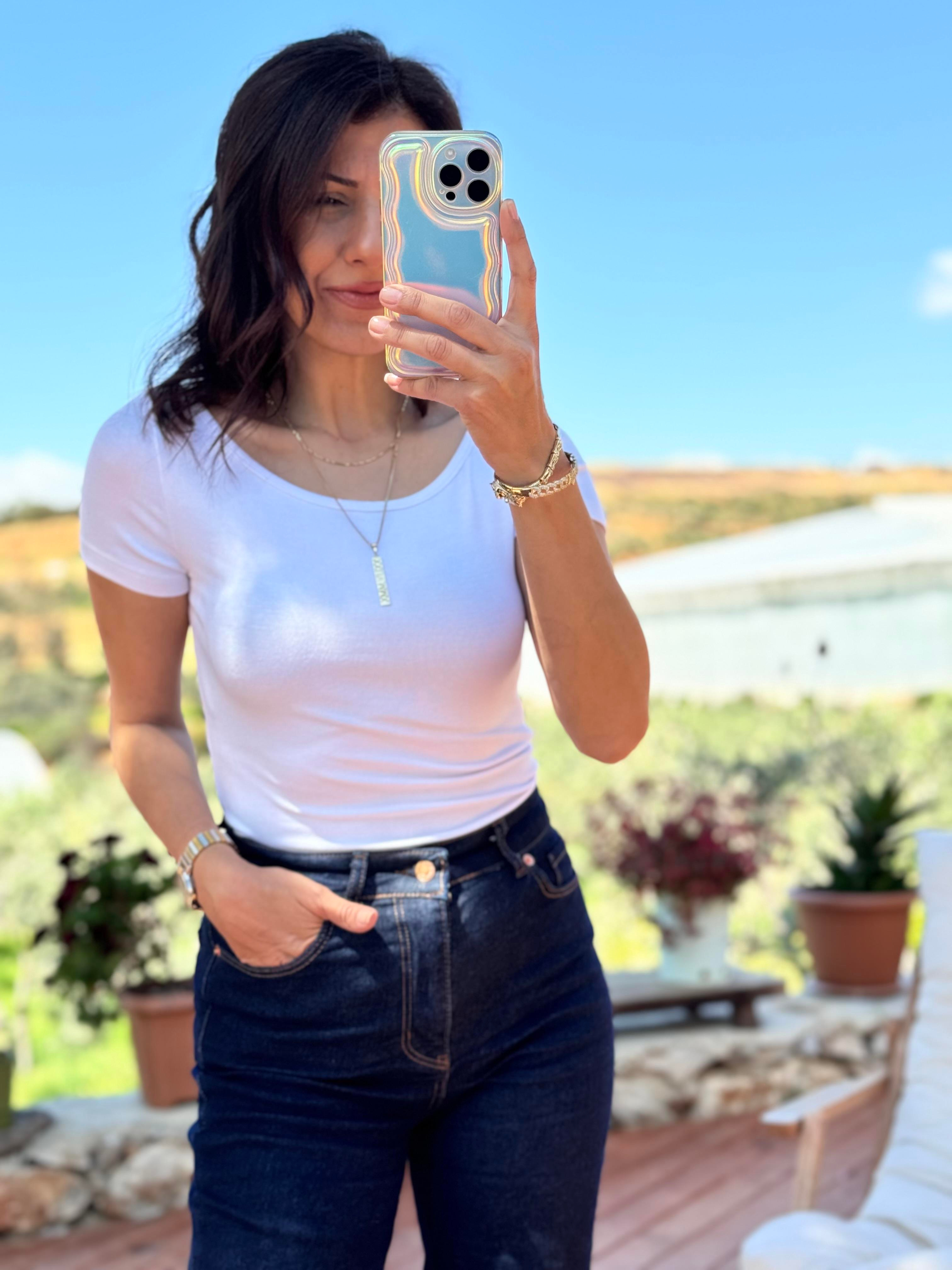 Kadın Orj Marka Kayık Yaka Modal Kumaş Badi Beyaz