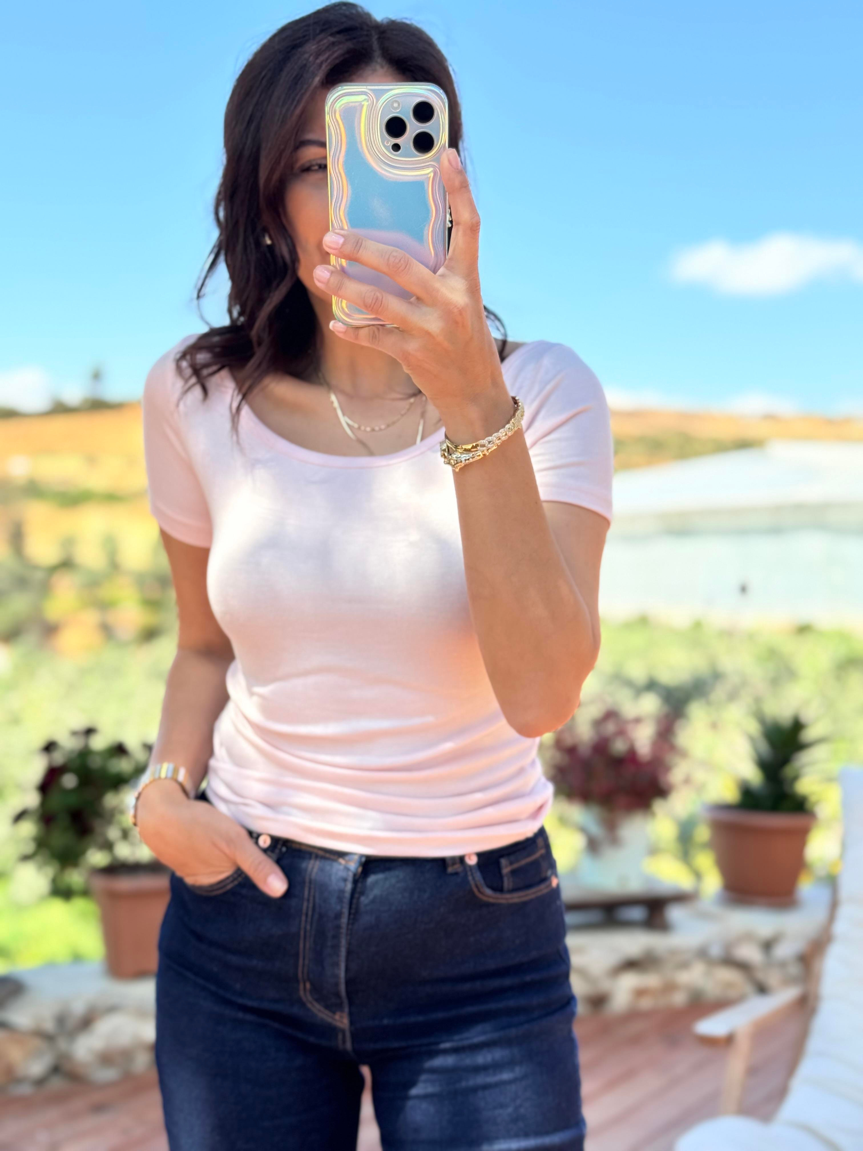 Kadın Orj Marka Kayık Yaka Modal Kumaş Badi Pudra Pembe