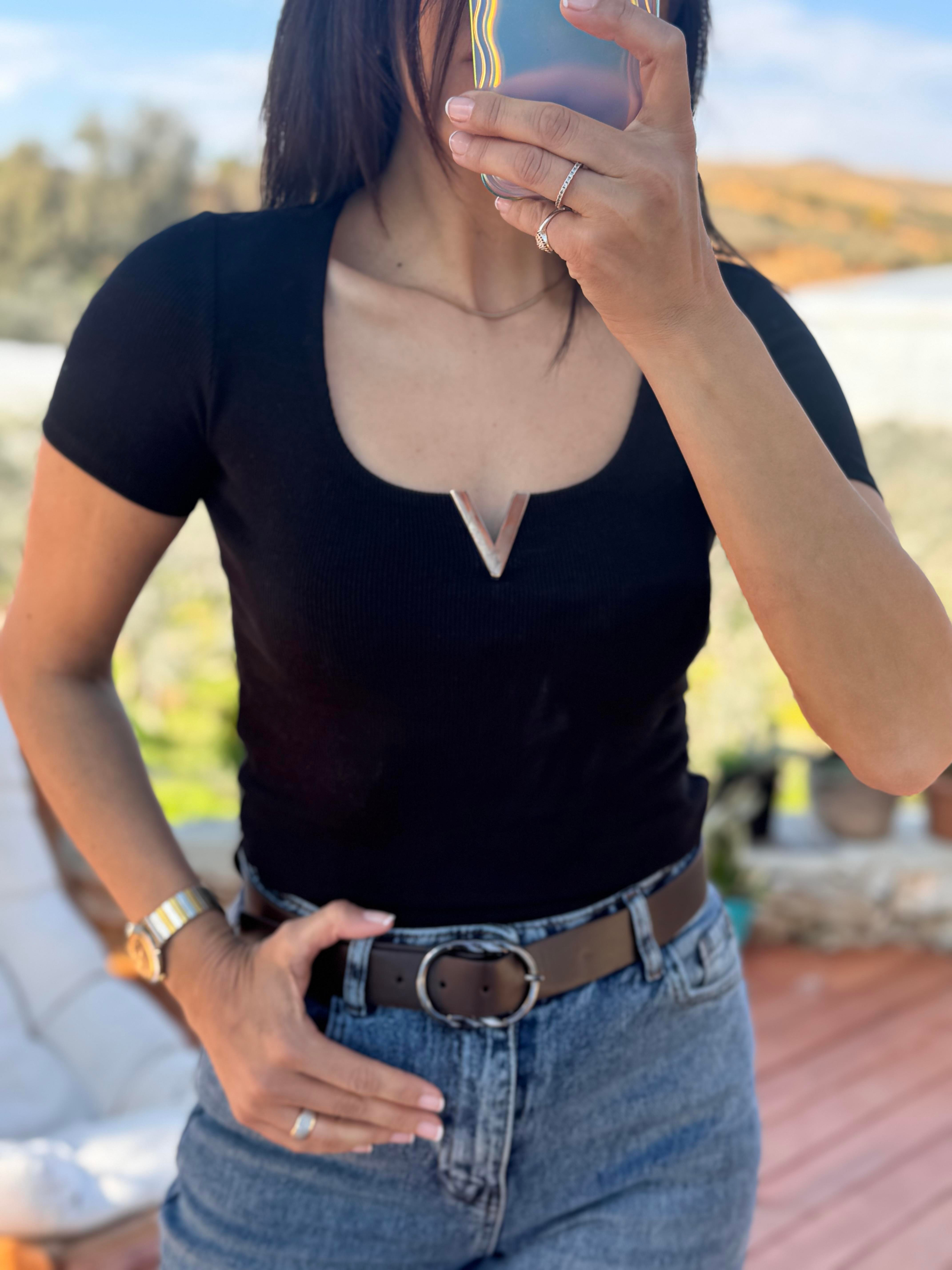 Karol Gold V Demirli Tshırt Siyah