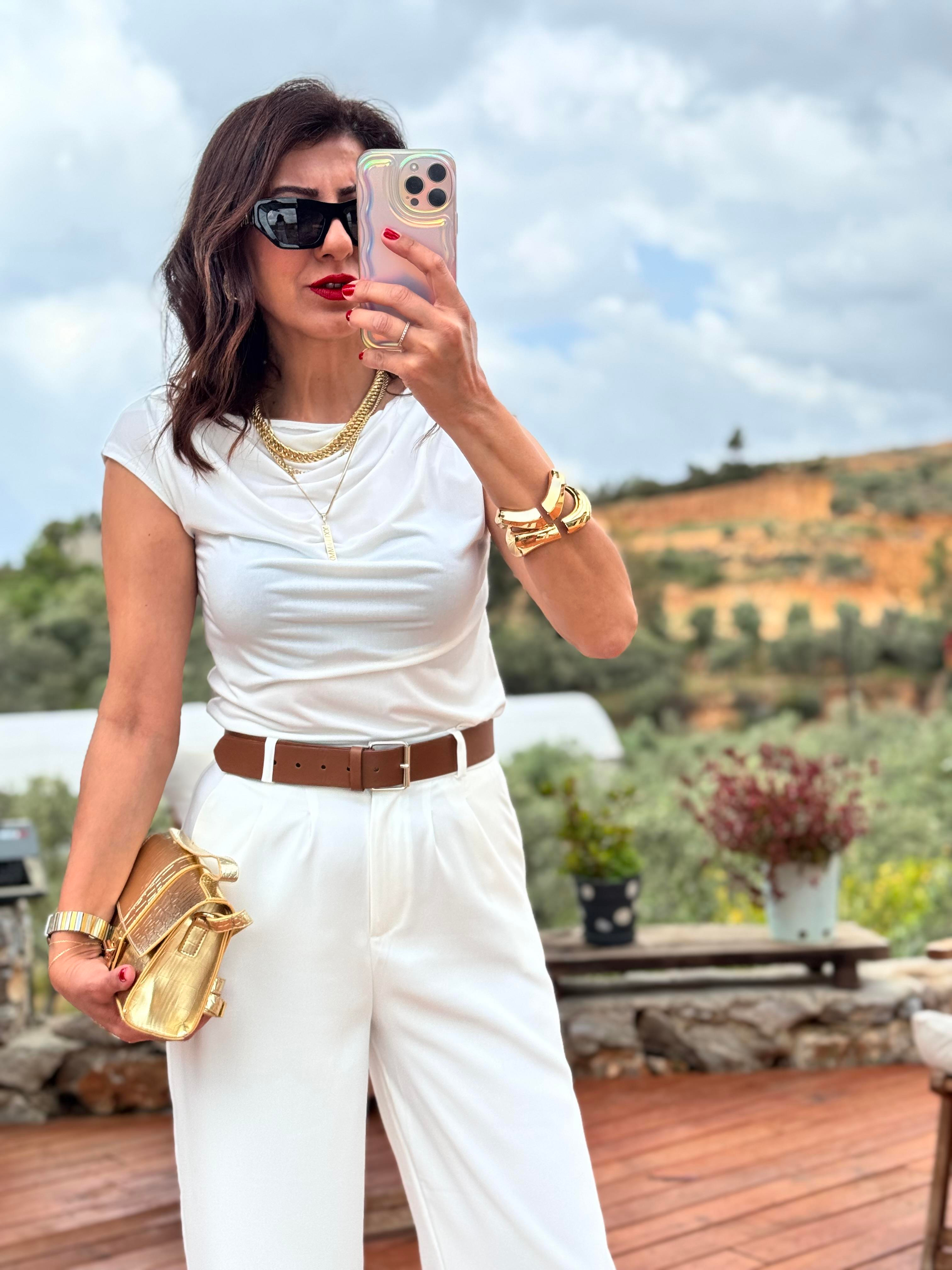 Kayık Yaka Omuz Buzgulü Salaş Bluz Ekru