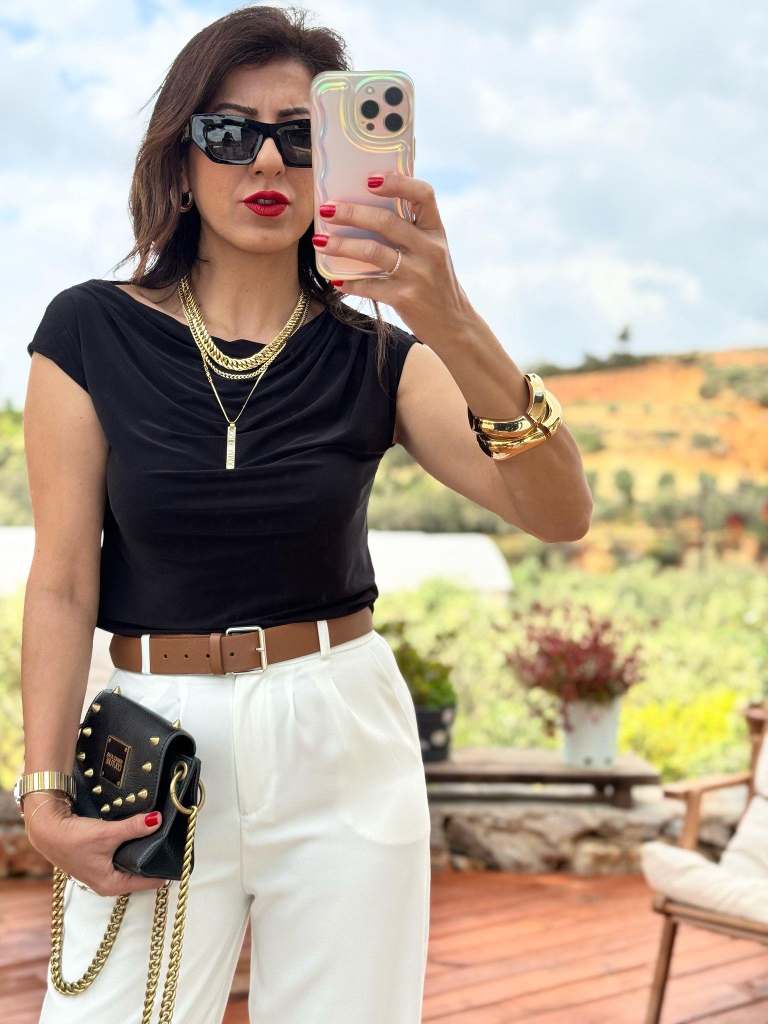 Kayık Yaka Omuz Buzgulü Salaş Bluz Siyah