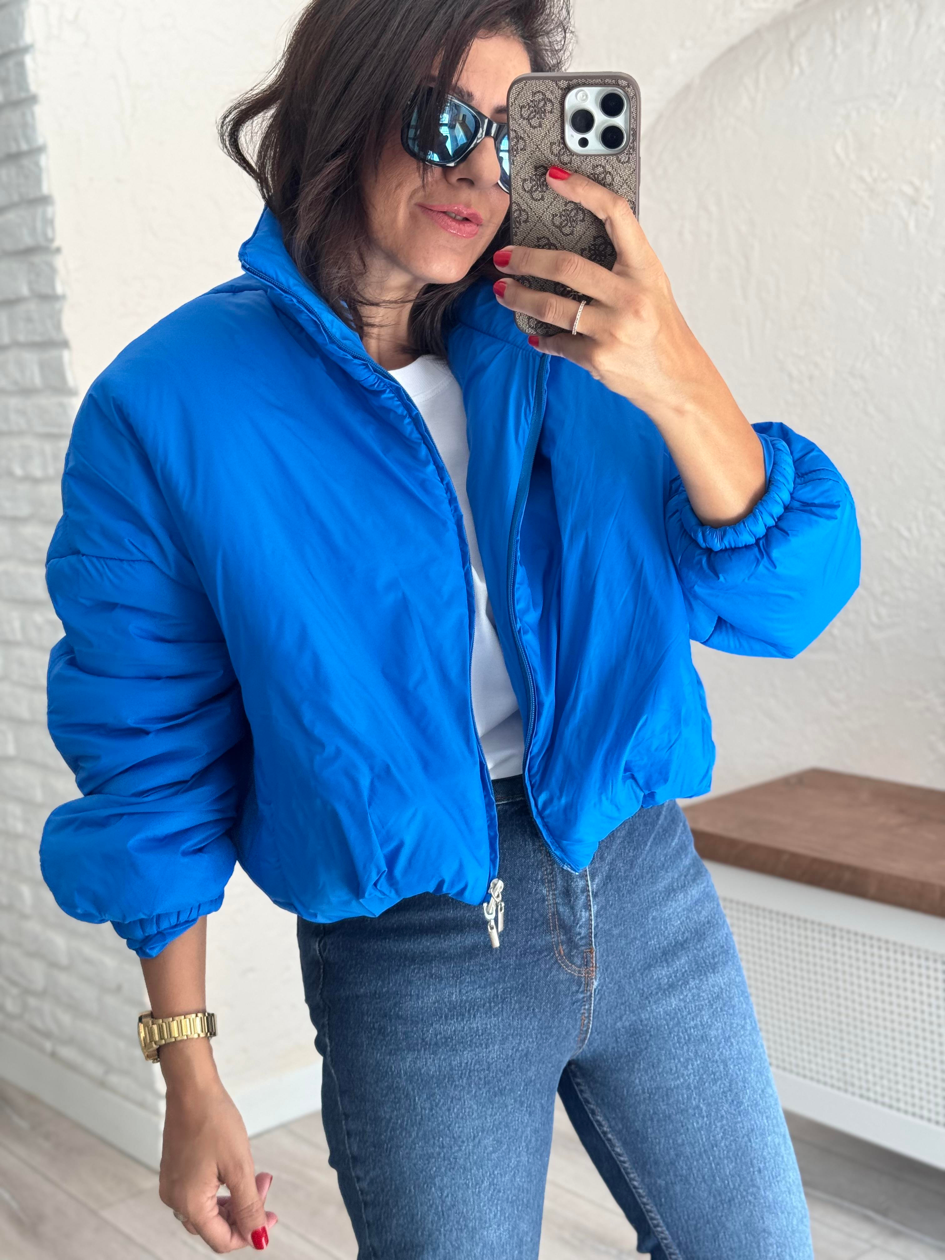Kısa Şişme Mont Sax Mavi (9596-1)