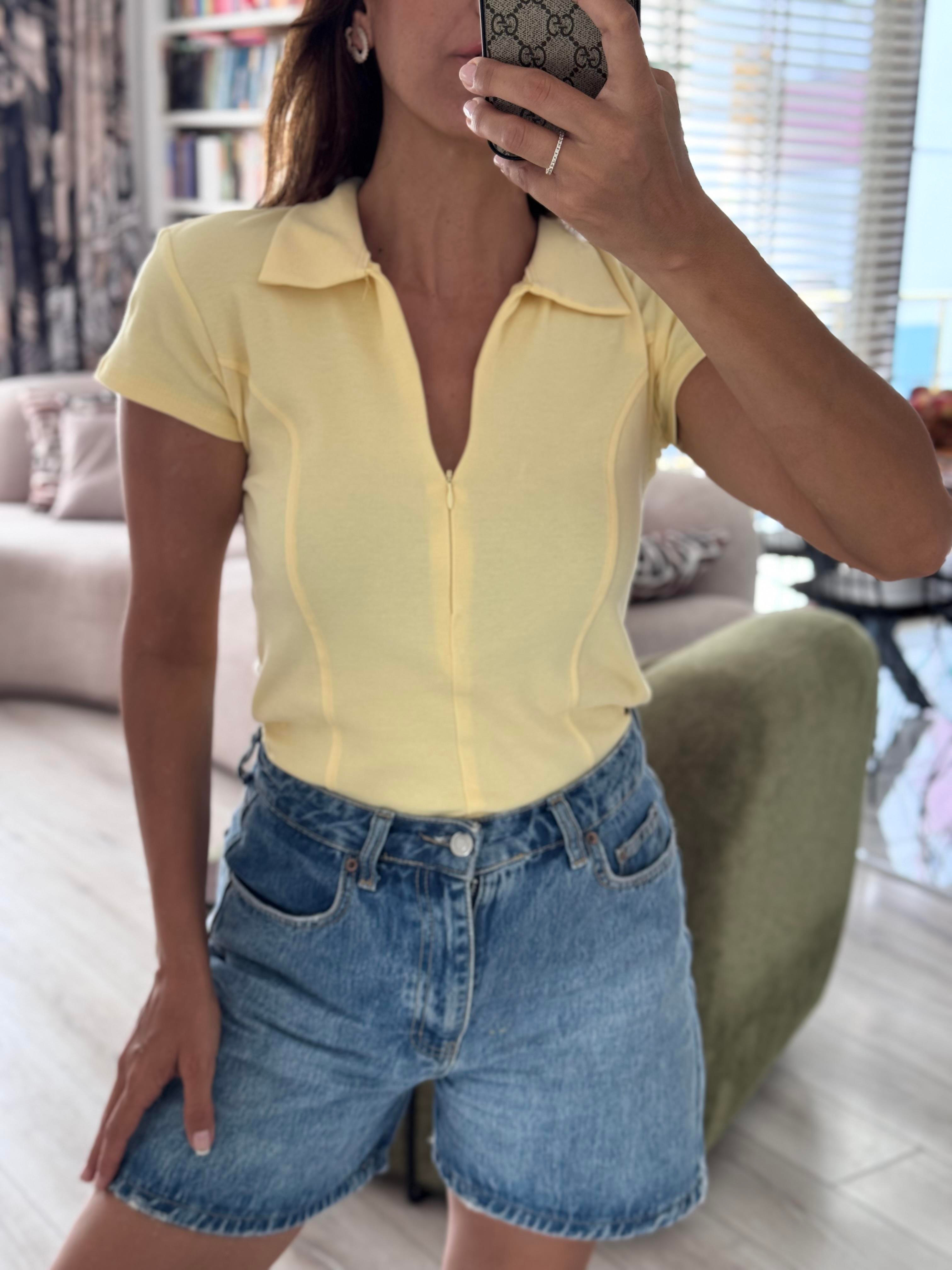 Önden Fermuarlı T-shırt Sarı (1093-4)