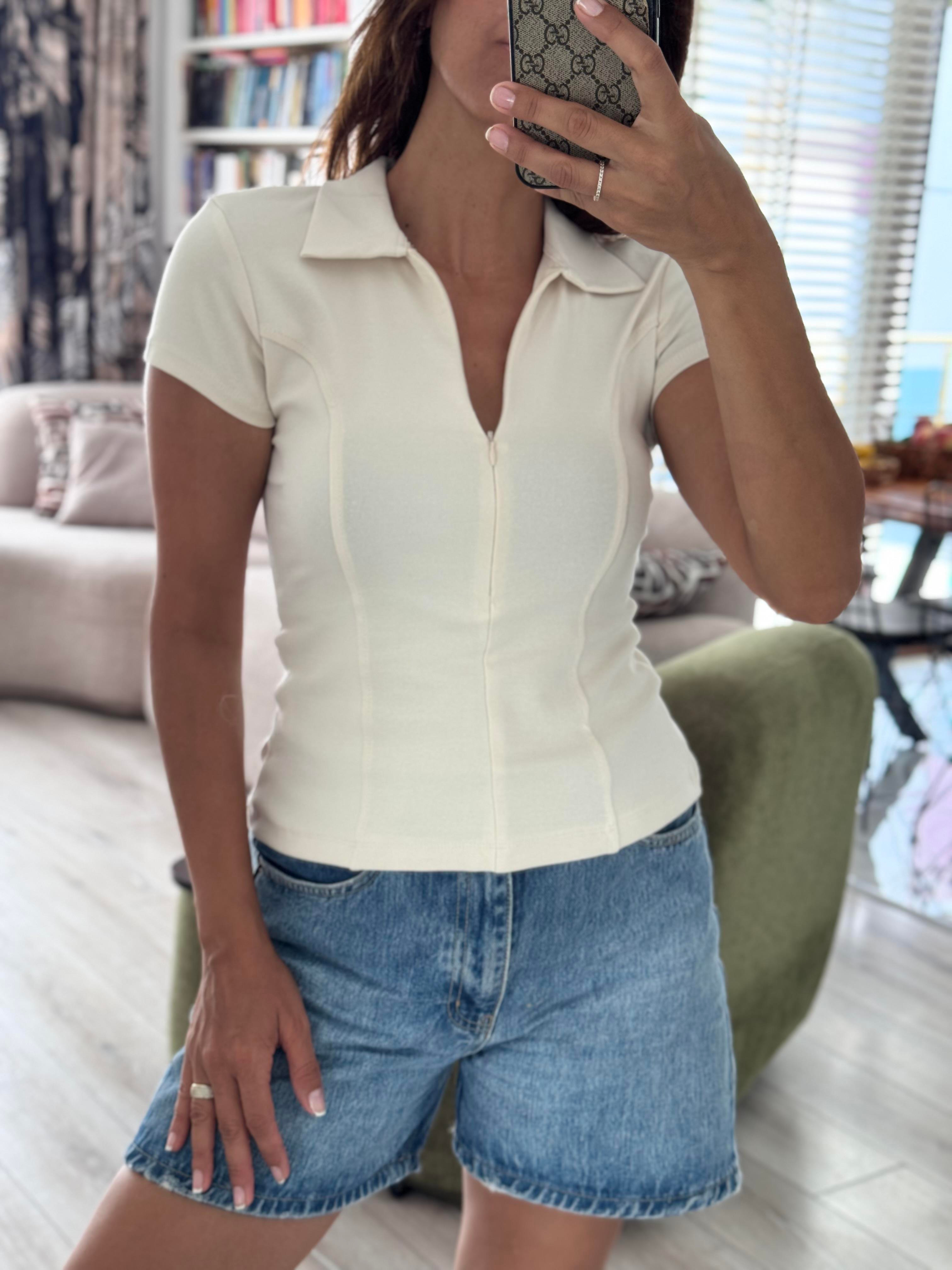Önden Fermuarlı T-shırt Taş (1093-2)