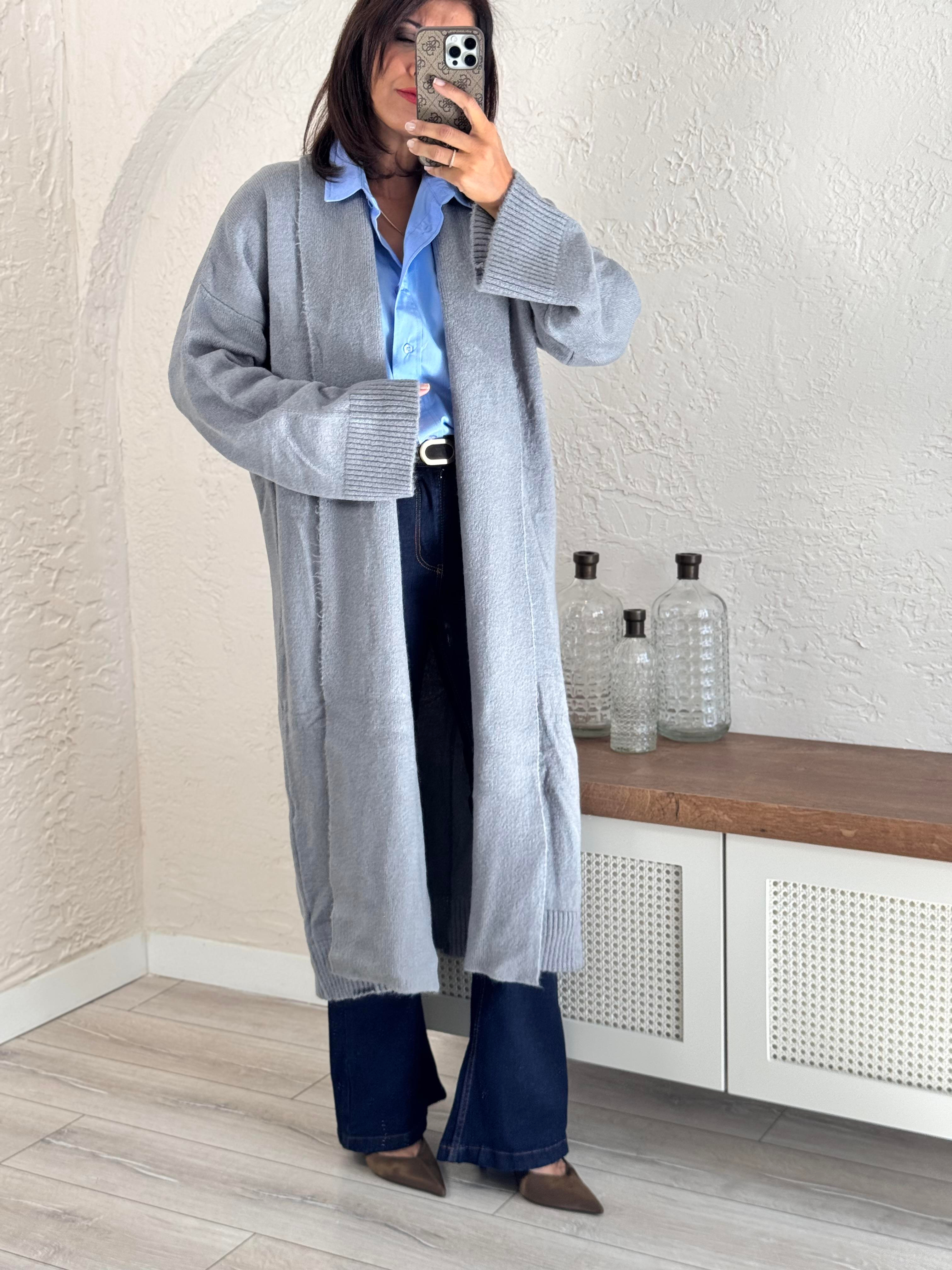 Önü Açık Şal Yaka Hırka Gri (0006-2)