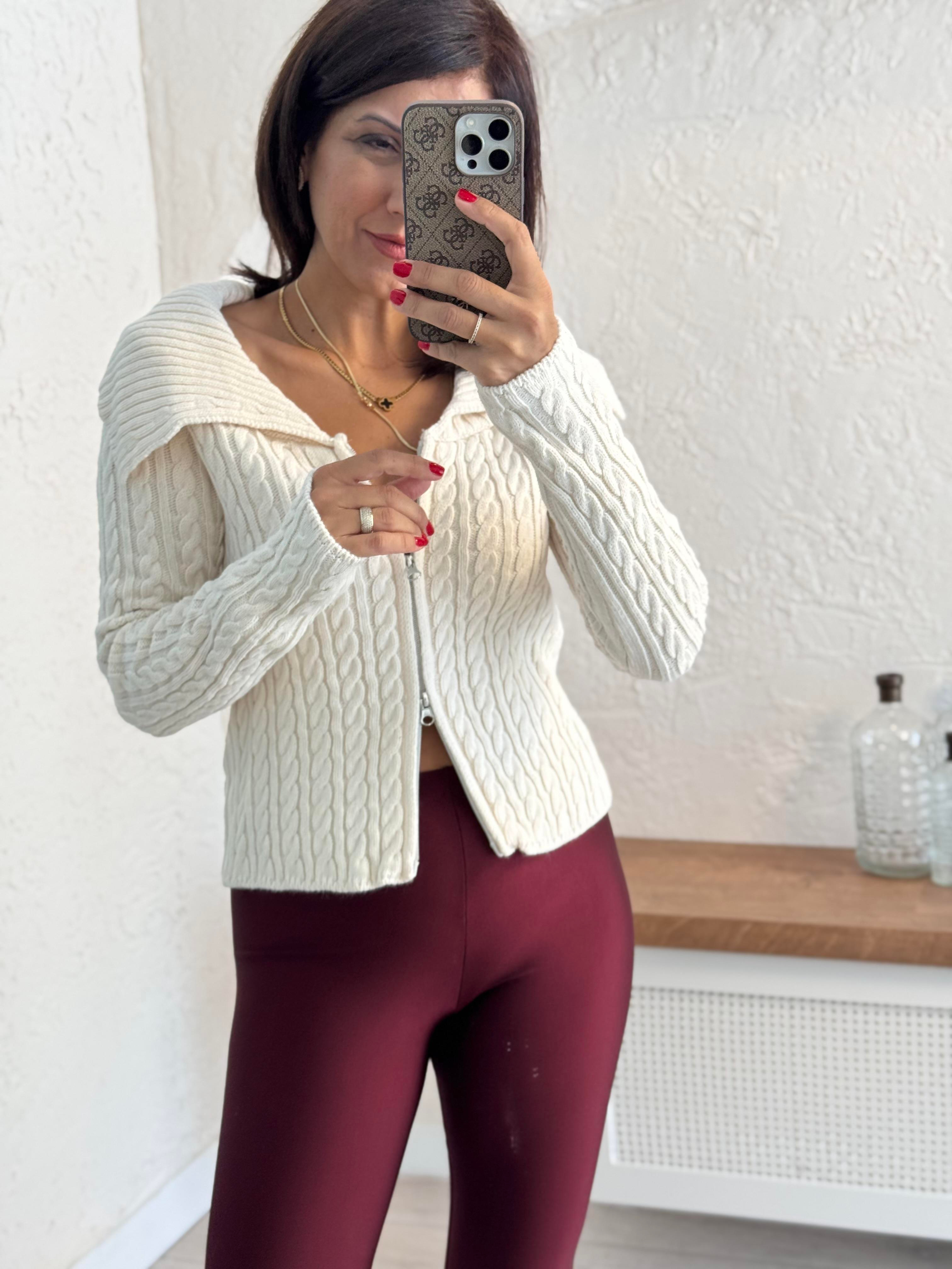 Saç Örgü Boydan Fermuarlı Lüx Hırka