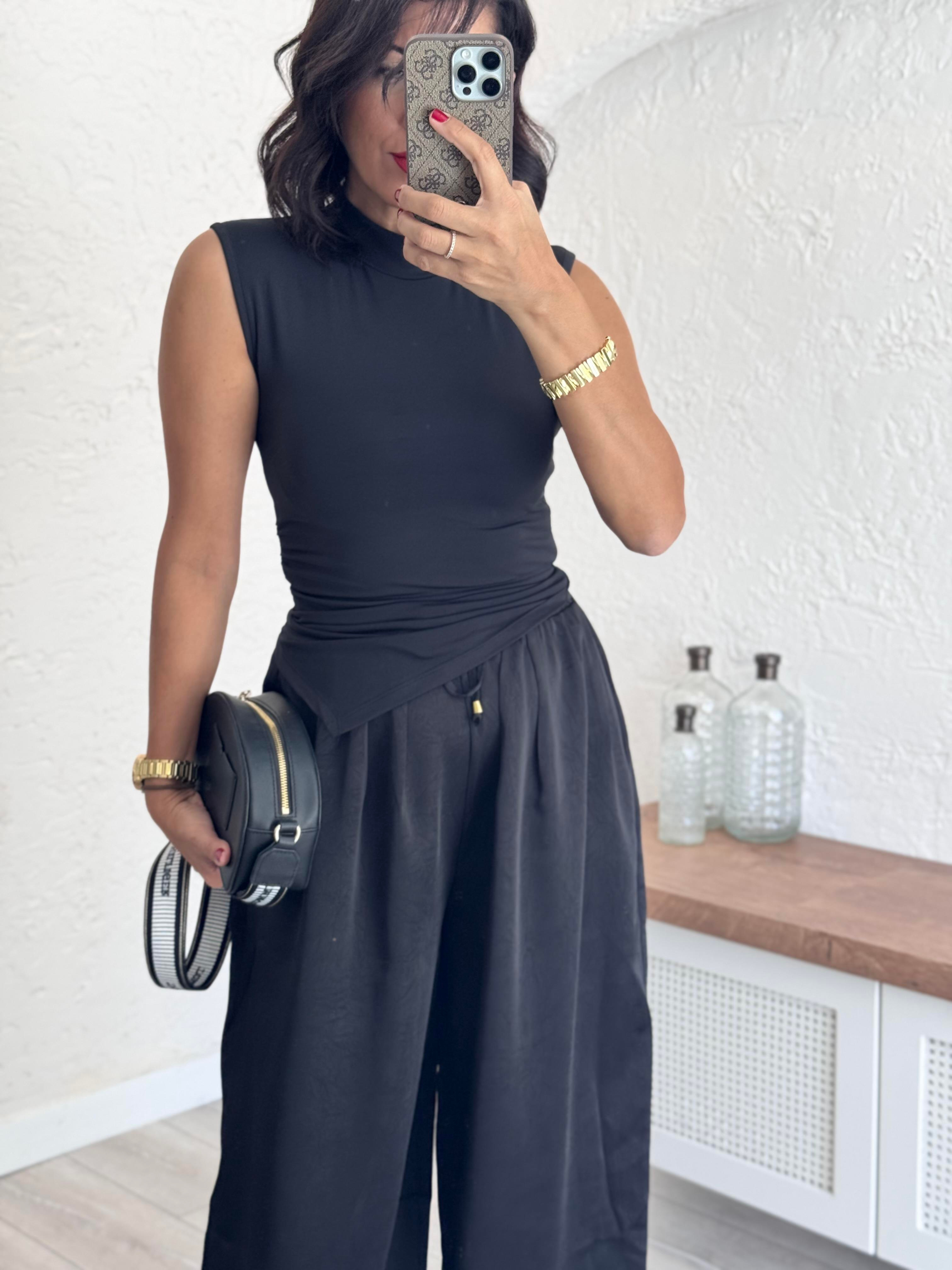 Scuba Kumaş Kolsuz Yarım Balıkçı Bluz Siyah