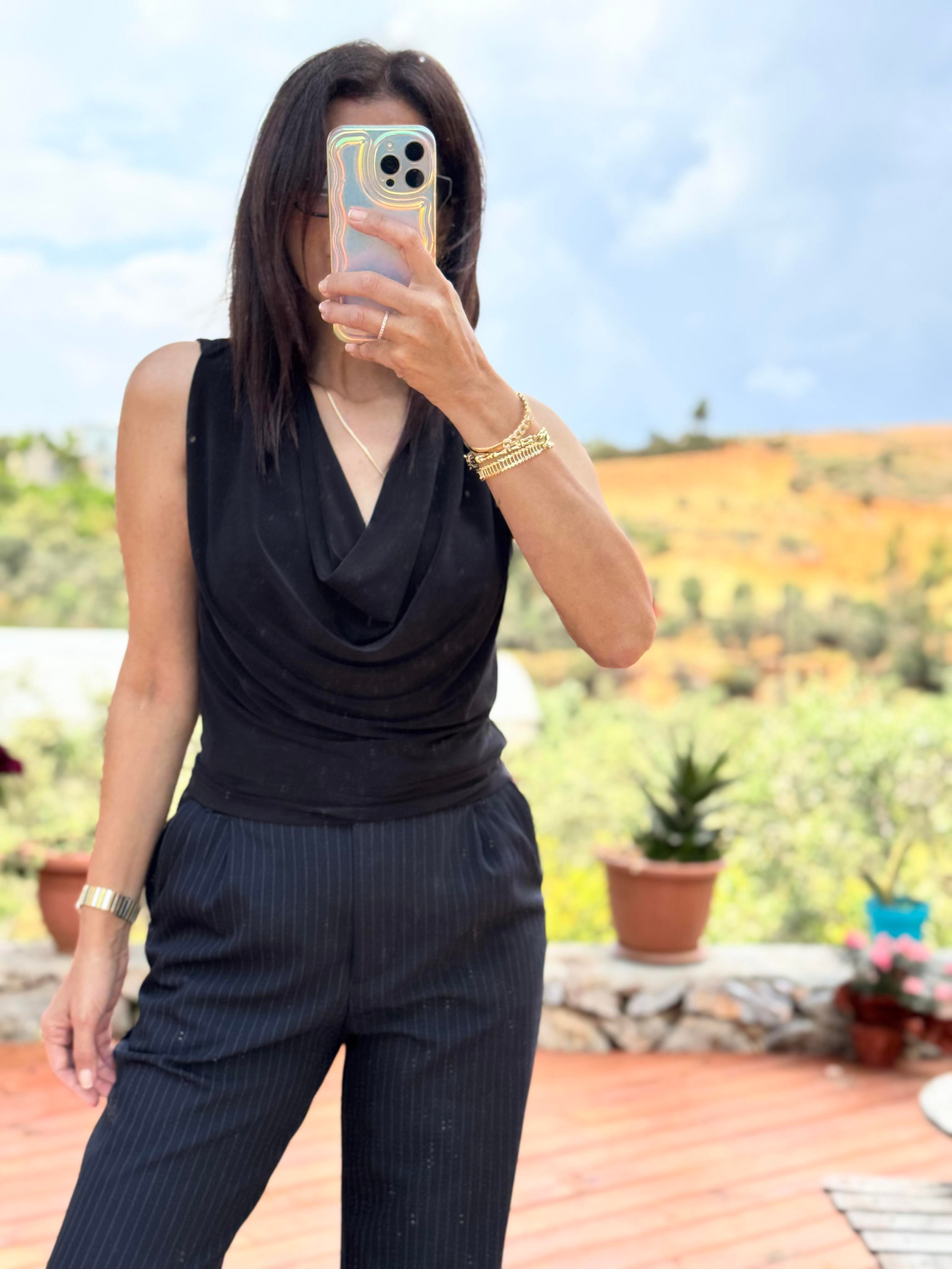 Sıfır Kol Degaje Bluz Siyah (0871-3)