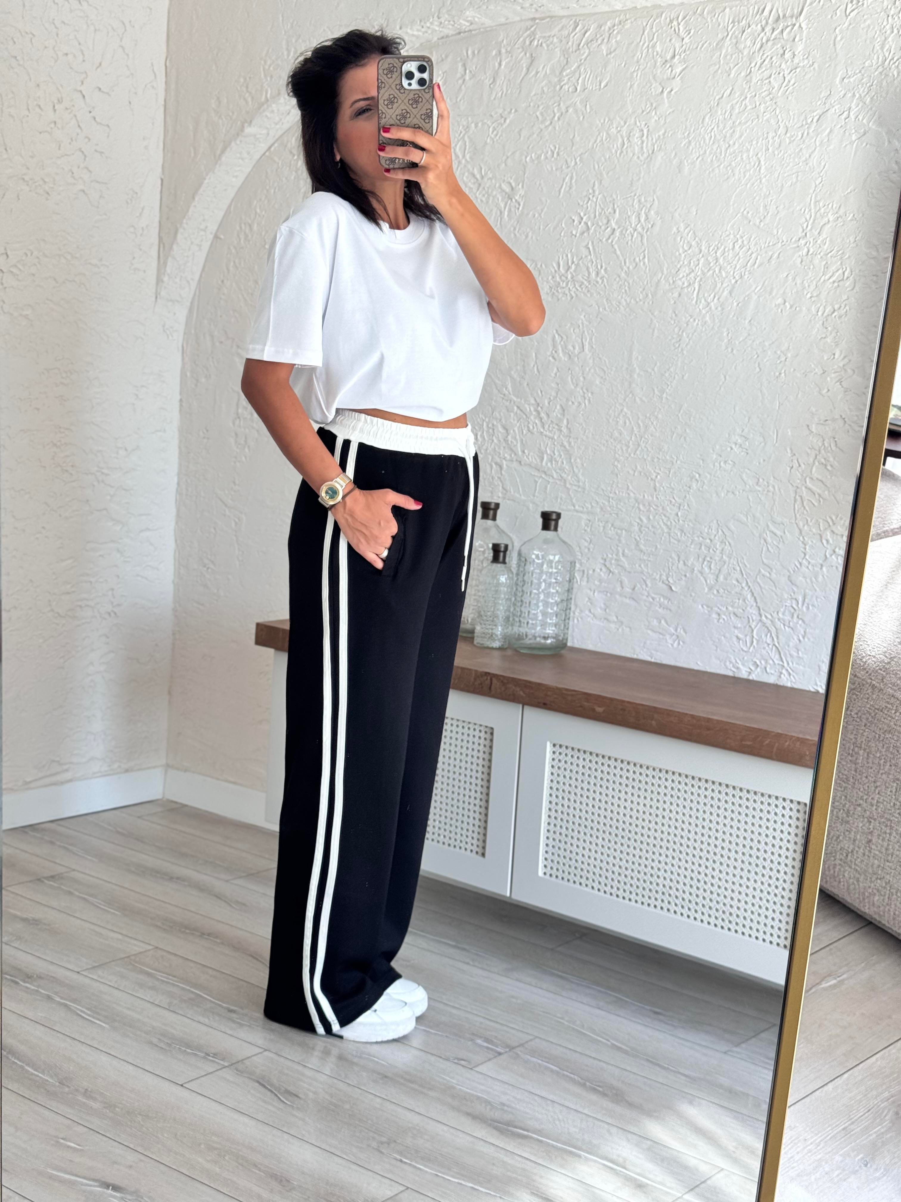 Siyah Yanı Üç Şeritli Eşofman Alt