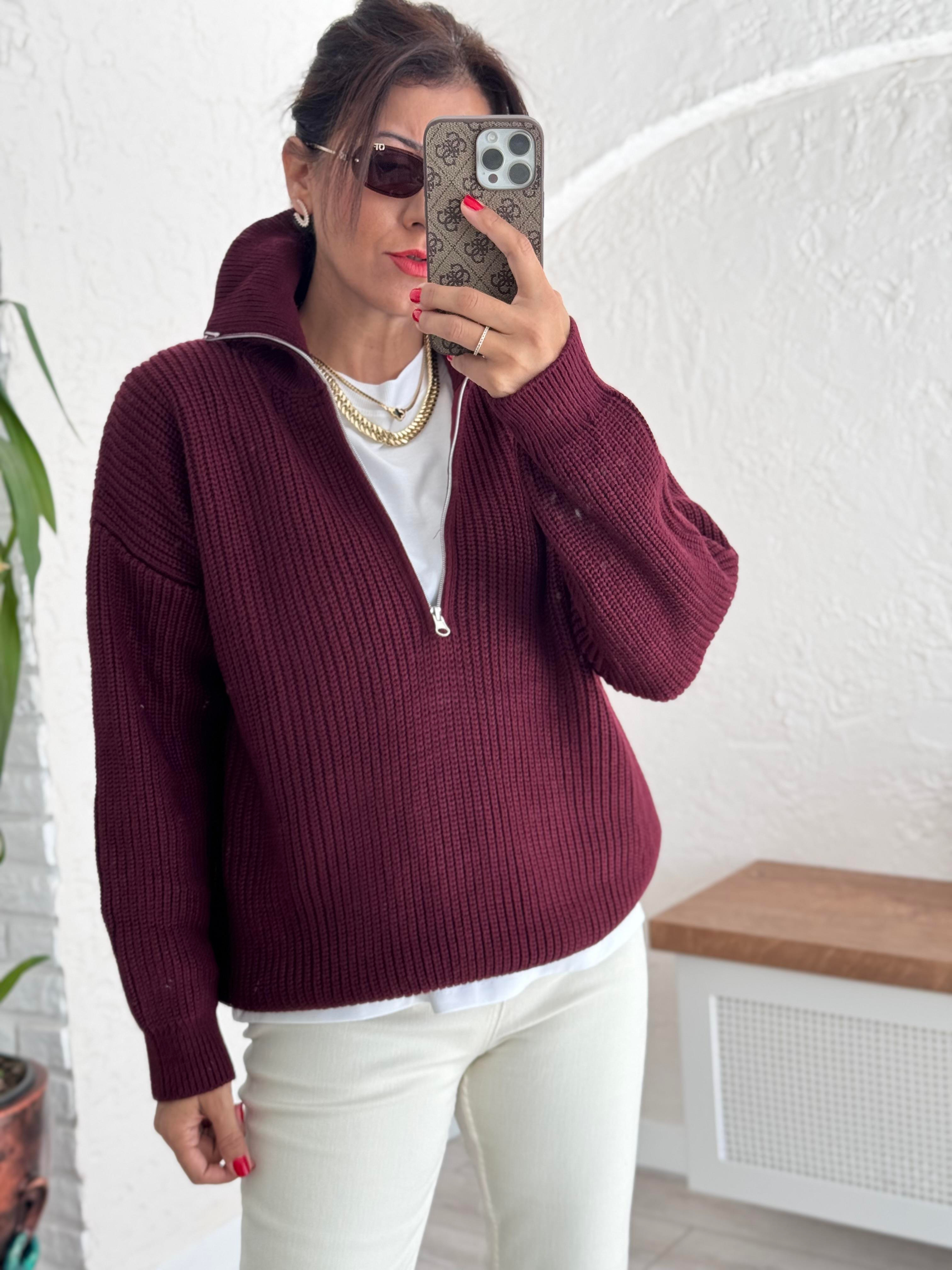 Yaka fermuarlı Kazak Bordo (1195-1)