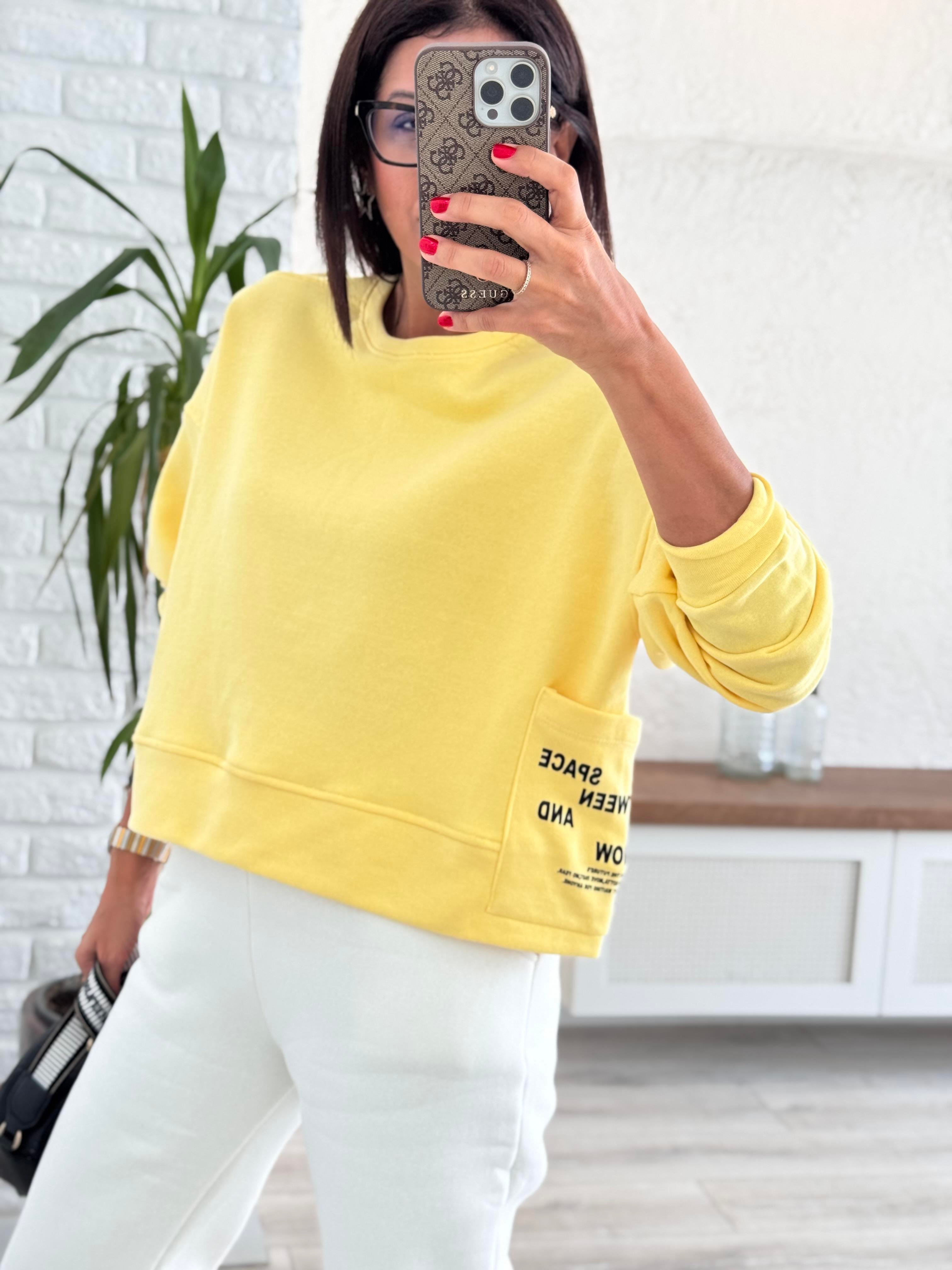 Yan Cepli Baskı Detaylı swet sarı
