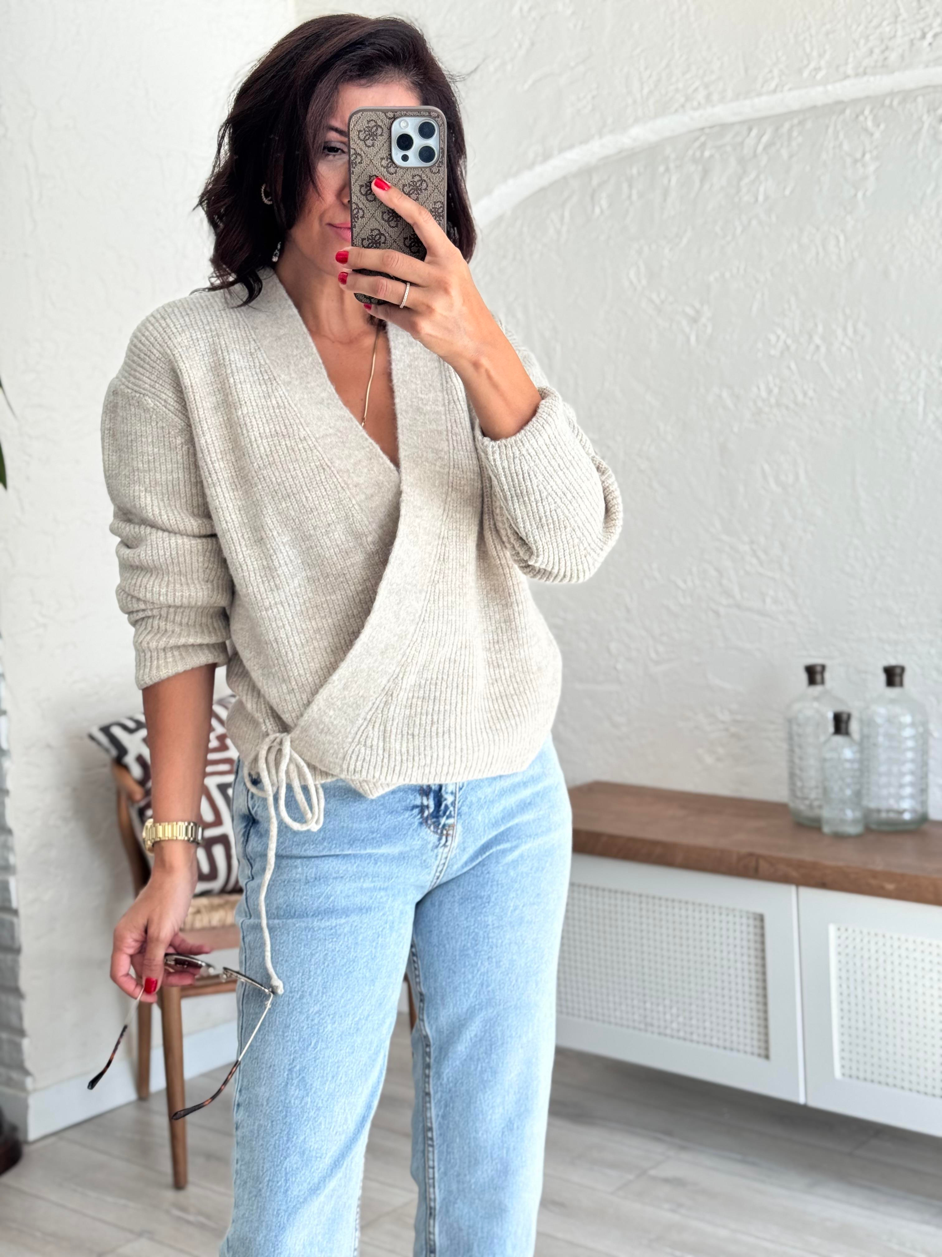 Yandan Bağlamalı Hırka Açık Bej (01008-1)