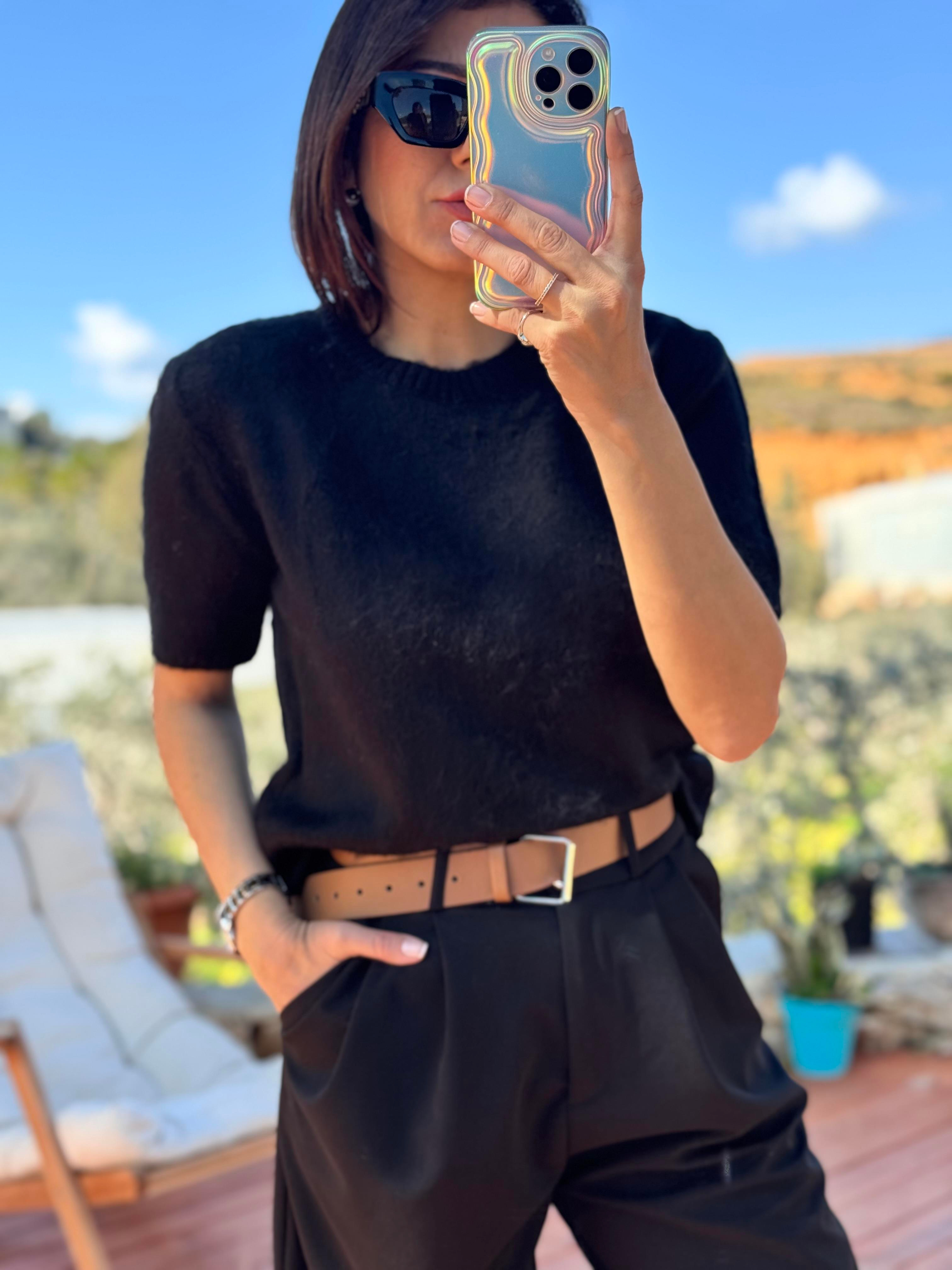 Yarım Kol Yumoş Triko Kazak Siyah